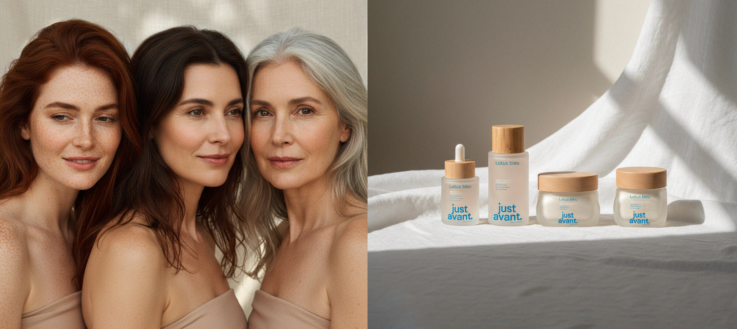 Just avant. est une gamme de soins épurée, comprenant des formules 100% naturelles unies par l'essence sacrée du Lotus Bleu pour des résultats visibles et durables.